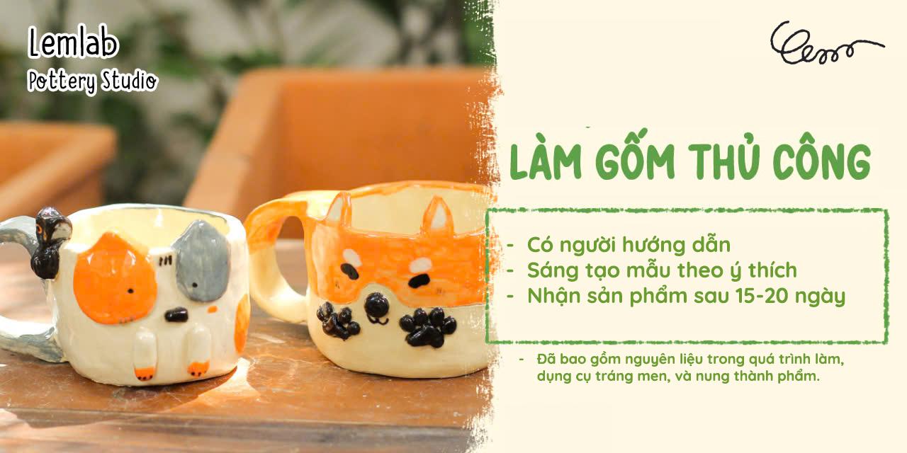 𝑳𝒆𝒎𝒍𝒂𝒃 là một studio làm gốm nhỏ xíu ở Sài Gòn. Ở chỗ tụi mình, có nhiều cây xanh, có chó có mèo, và nhiều đồ để làm gốm. Ở cái studio nhỏ xíu này, tụi mình mày mò làm gốm, rồi mở cửa để mọi người tới chơi cùng.